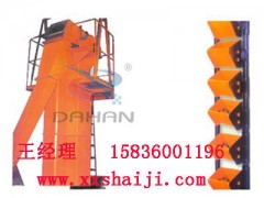 碎石斗式提升机链式斗式提升机适用于输送粉状、粒状及小块状的无磨琢及磨琢性小的物料。TH型是一种圆环链斗式提升机采用混合式或重力卸料,挖取式装料。牵引件用优质合金钢高度圆环链。中部机壳分单、双通道两种形式为机内重锤箱恒力自动张紧。链轮采用可换轮缘组合式结构。使用寿命长,轮缘更换工作简便。下部采用重力自动张紧装置,能保持恒定的张紧力,避免打滑或脱链,同时料斗遇到偶然因素引起的卡壳现象时有一定的容让性,能够有效地保护下部轴等部件。该斗式提升机适用于输送堆积密度小于1.5t/m3易于掏取的粉状、粒状、小块状的底磨琢性物料。如煤、水泥、碎石、砂子、化肥、粮食等。TH型斗式提升机用于各种散状物料的垂直输送。适用于输送粉状、粒状、小块状物料,物料温度在250℃以下。
